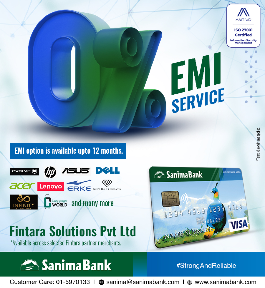 फिनटेक र सानिमा बैंकबीच सहकार्य : क्रेडिट कार्ड प्रयोगकर्तालाई शून्य प्रतिशत ईएमआई सुविधा